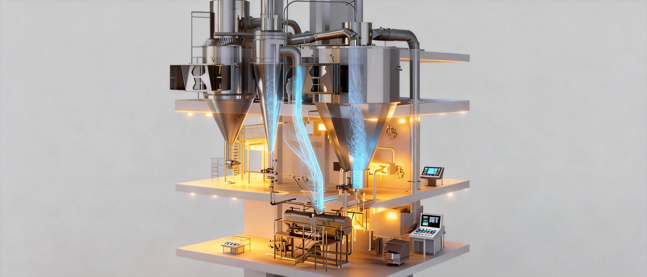 喷雾干燥完全指南 在食品、制药、化工等众多行业,将液体高效转化为高品质的干燥粉末是一项关键工艺。其中,喷雾干燥技术以其连续操作、产品均一度好和适用性广的核心优势,成为这一领域的明星工艺。下面将为您深入解析喷雾干燥的完整过程、核心组件、科学原理及行业应用。 一、喷雾干燥的本质与优势 喷雾干燥是一种通过瞬间蒸发水分,将液体、悬浮液或浆料直接转化为干燥固体颗粒的连续工艺。其核心在于利用雾化器将液体打散成...