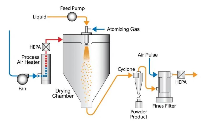 一、喷雾干燥机是什么? 喷雾干燥机是一种高效的工业连续干燥系统。其核心功能在于,将各种液态原料——包括溶液、悬浮液、乳液乃至可泵送的浆料——通过一步法快速转化为干燥的粉末或颗粒产品。这一过程并非简单烘干,而是通过对物料物理特性的精准控制,实现对其粒度、密度、水分及流动性的定制化生产。尤其对于热敏性物质(如蛋白质、益生菌、香料),喷雾干燥以其温和的加工特性,成为不可替代的关键工艺。 该技术得以广泛应用...
