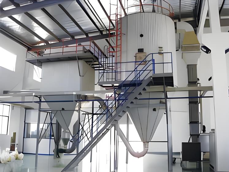 热空气通过干燥塔顶部的热风分配器均匀进入干燥室。雾化后的液滴与热空气充分接触,水分在瞬间(通常仅需几秒到几十秒)蒸发。由于干燥时间极短,特别适合热敏性物料,如生物制品或食品,能够有效保留物料的活性成分和风味。