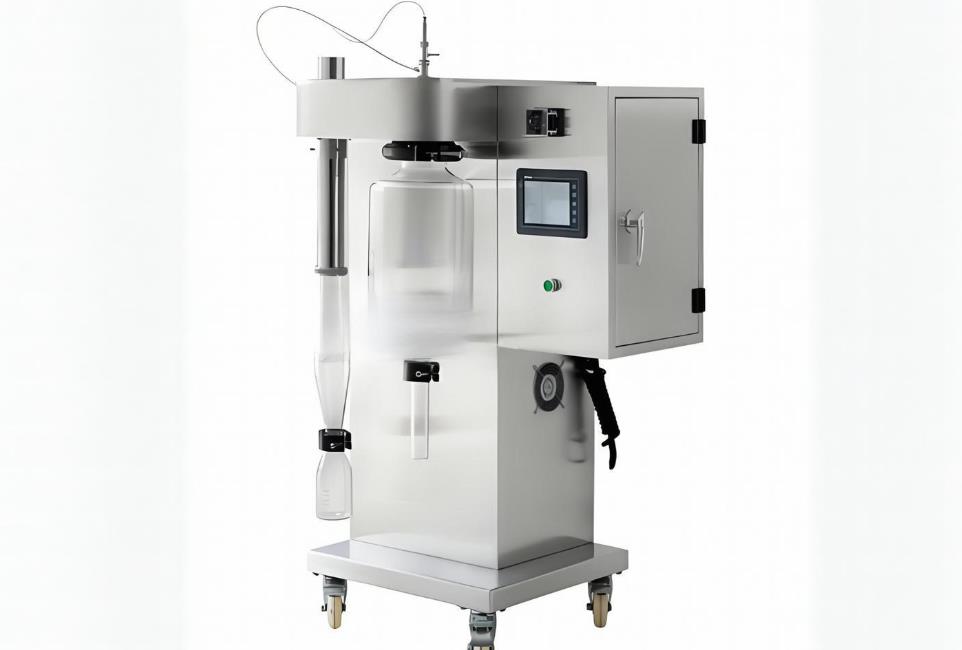 实验室用小型喷雾干燥机作为一种高效、精准的干燥设备,在科研实验和小规模生产中扮演着重要角色。其核心功能是通过喷雾干燥技术将液体或悬浮液快速转化为固体粉末,广泛应用于食品科学、制药研发、化工实验等领域。以下是其具体用途的详细介绍: